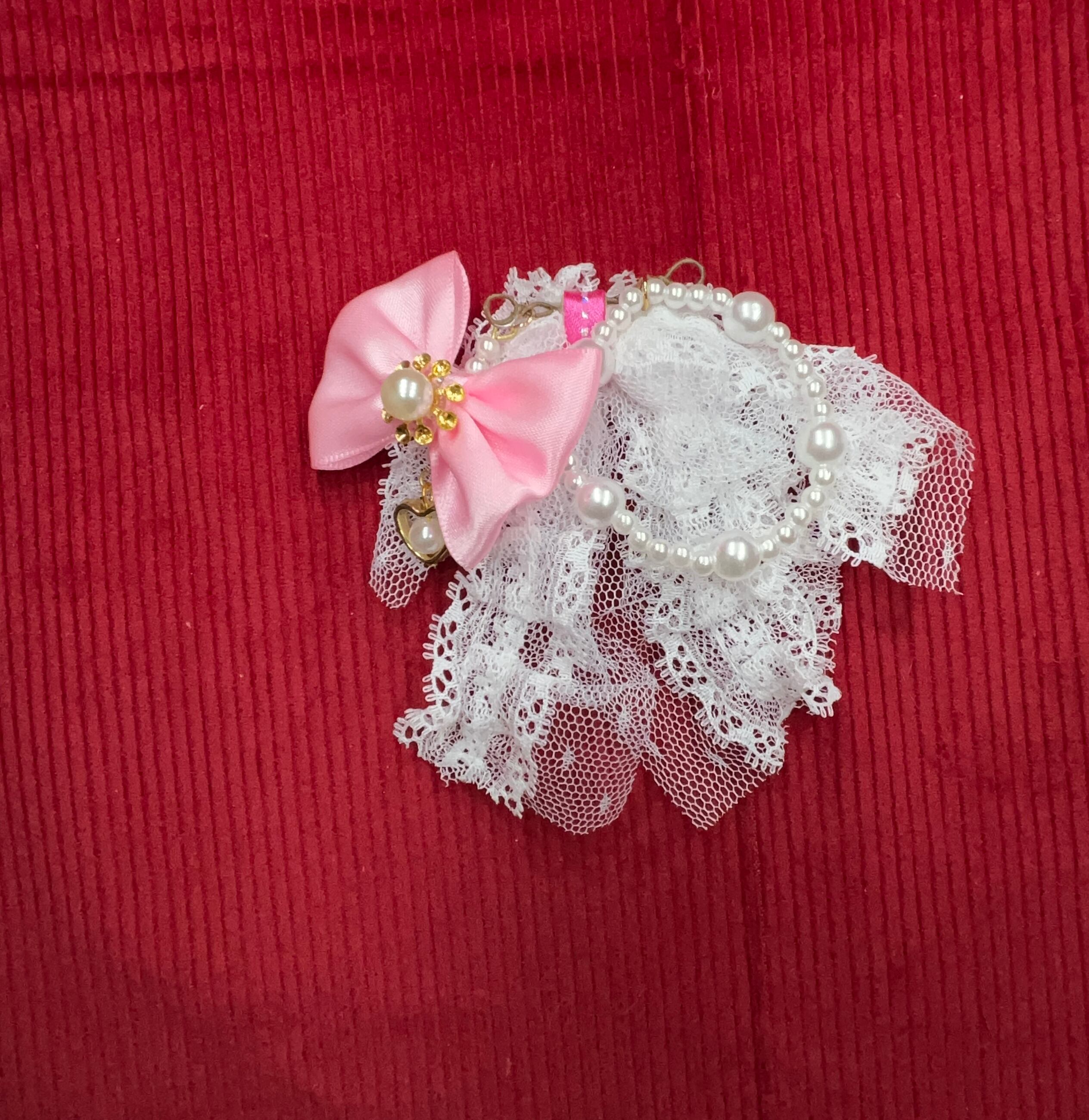 リボン、レース、パール 幅6cm 長さ6cm